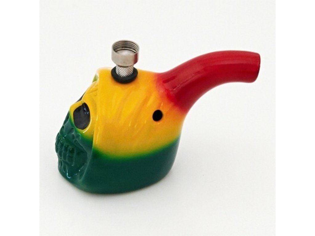 Malý bong z keramiky ve tvaru lebky v tradiční barevné kombinaci rasta