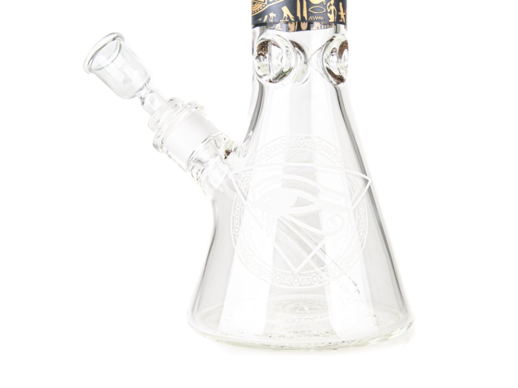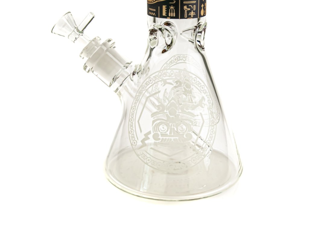Čirý bong střední velikosti z odolného tvrzeného skla Simax zdobený egyptskými motivy.