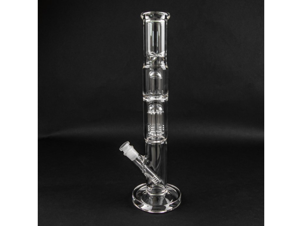 Čirý bong střední velikosti z odolného tvrzeného skla Simax se zabudovaným percolatorem pro chlazení kouře.