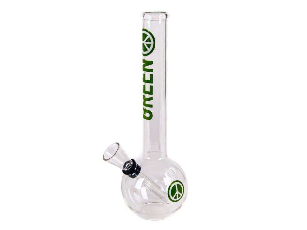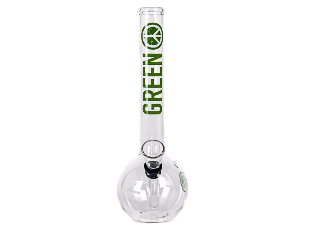 Menší bong z odolného skla Simax se zeleným logem Greenline.