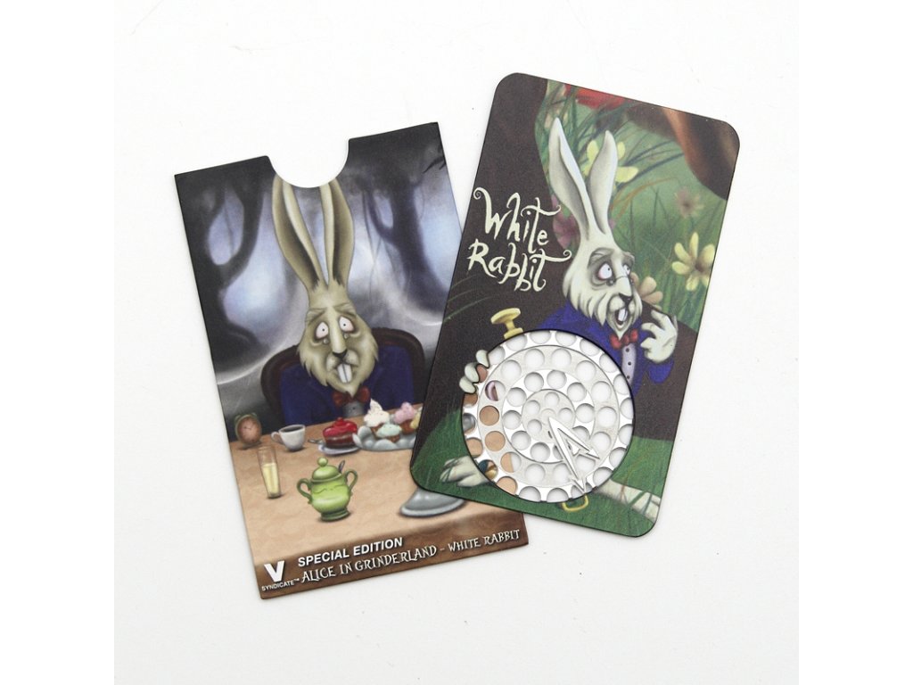 Grinder je vyroben z odolné nerezové oceli a snadno se čistí. Je naprosto bezpečný i pro méně šikovné prsty. Dodává se spolu s obalem, který je stejně jako drtička samotná vybaven motivem Alenky z knihy Alenka v Říši divů. Stylovější design byste hledali jen velmi těžko.