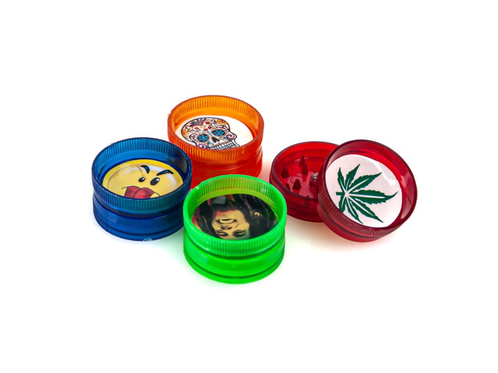 Plastová drtička v mini provedením, ozdobená různými motivy ve čtyřech barevných provedeních.