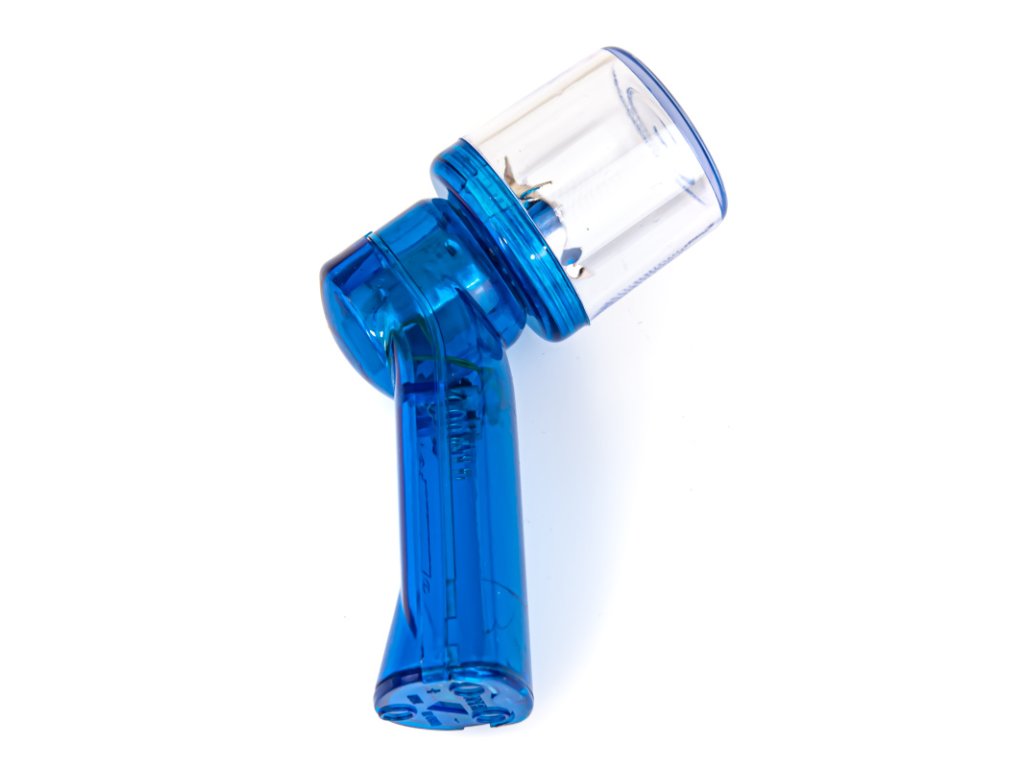 K použití tohoto drtiče stačí dvě tužkové baterie, pohánějící vrtulku s hroty. Proces drcení lze spustit zmáčknutím tlačítka po boku drtiče. Nádobka na materiál je z průhledného plastu, takže je možnost kontrolovat stav obsahu nádobky a určit míru drcení dle své potřeby. Nádobka je šroubovatelná.