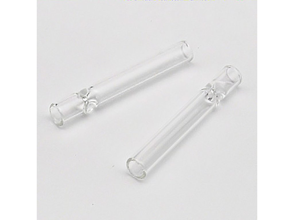 Kratší jednoduchá skleněnka z tvrzeného borosilikátového skla pyrex. Skleněnka je zůžená za kotlíkem.