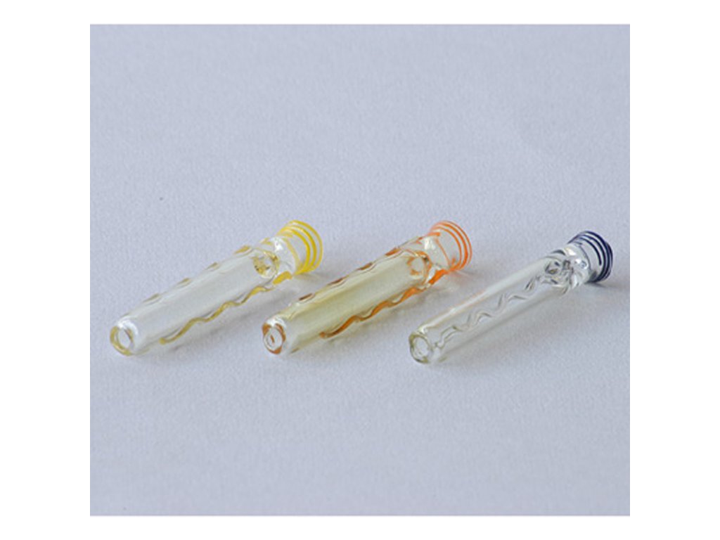 Výborná skleněnka z borosilikátového skla se zúženým náustkem zdobená po celé délce malým hadem a barevnou spirálou na kotlíku
