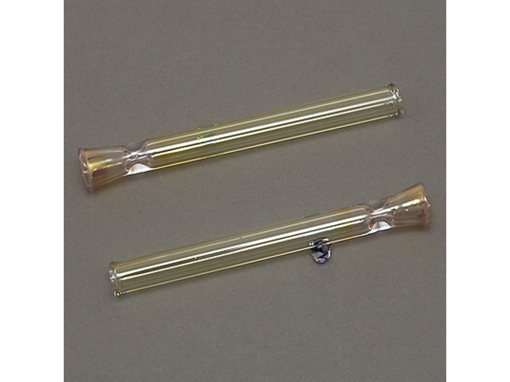 Jednoduchá čirá skleněnka z odolného borosilikátového skla pyrex s rozšířeným kotlíkem a kuličkou která zabraňuje skutálení ze stolu. Celá skleněnka je lehce zbarvená do žluta.