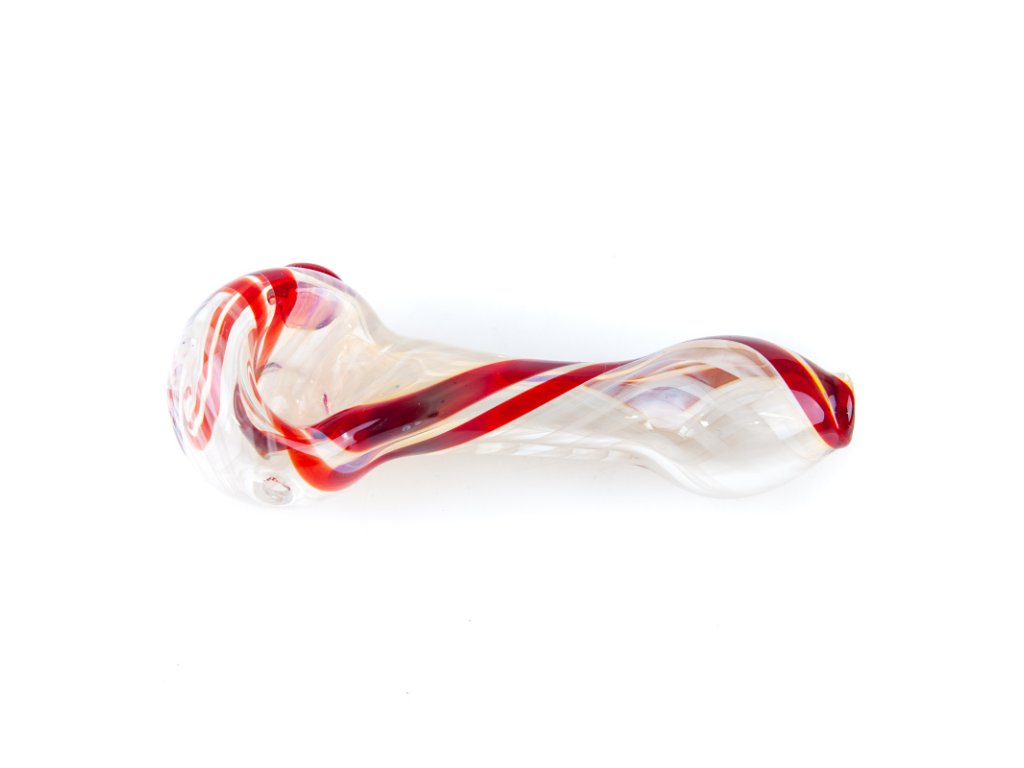 Perfektní šlukovka z odolného borosilikátového skla pyrex s prodlouženým náustkem a bočním turbem. Tato dýmka mléčné barvy je zdobená červenými proužky.