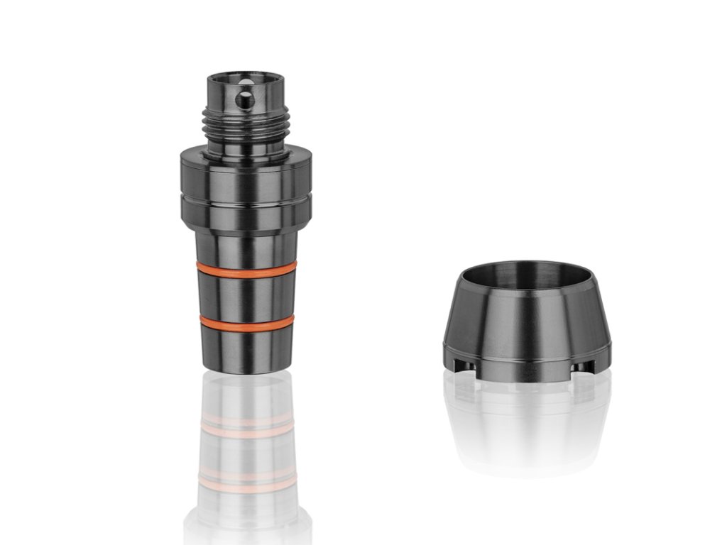 Adaptér pro nastavení odfuku dýmu z kvalitní nerezové oceli se jednoduše připevní k tělu dýmky. Plynulým otáčením adaptéru můžete volit směr odfuku - nahoru, do stran, nebo kombinaci obou variant.