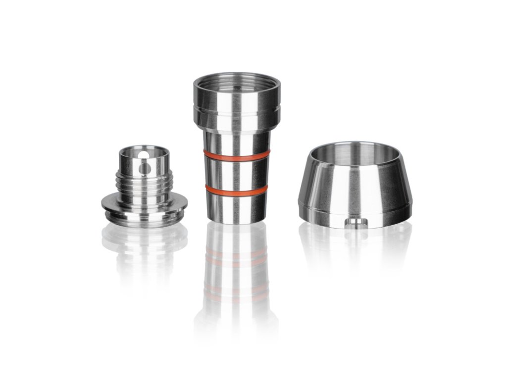 Adaptér pro nastavení odfuku dýmu z kvalitní nerezové oceli se jednoduše připevní k tělu dýmky. Plynulým otáčením adaptéru můžete volit směr odfuku - nahoru, do stran, nebo kombinaci obou variant.