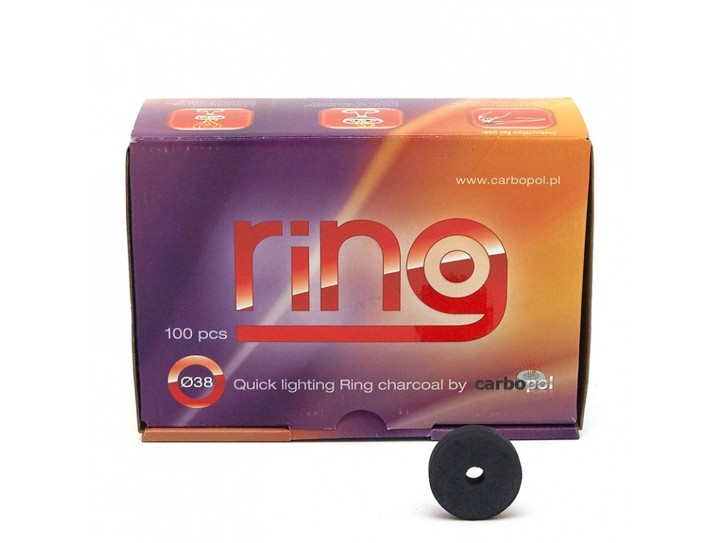 Uhlíky Carbopol Ring 38 mm jsou rychlozápalné, speciálně vytvarované uhlíky pro rychlejší a rovnoměrnější rozpalování. Uhlík se dokáže zapálit s použitím jediné zápalky. Tyto uhlíky mají vysokou výhřevnost, doba žhnutí při kouření vodní dýmky je přibližně 40 minut.