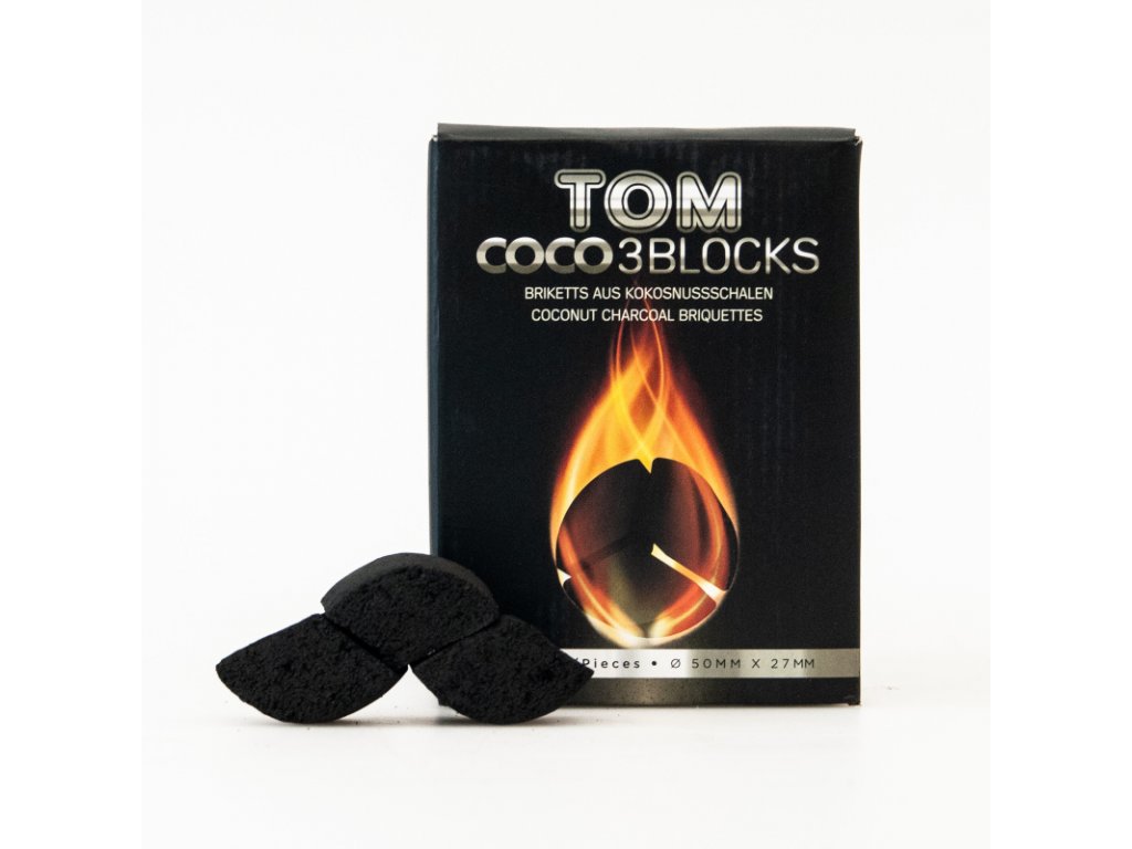 Přírodní kokosové uhlí pro kouření vodní dýmky nebo grilování Tom Coco je vyrobeno z kokosových skořápek, které jsou zbytkovým produktem při výrobě kokosového oleje. Jedná se o 100% přírodní a ekologický produkt při jehož výrobě nebyly použity žádné chemické látky a nebyl pokácen jediný strom! Uhlí Tom Coco krásně hoří bez obtěžujícího zápachu a kouře.