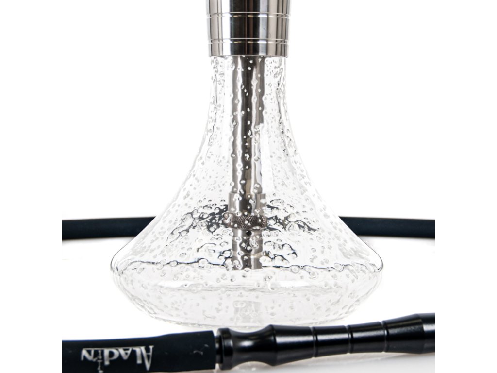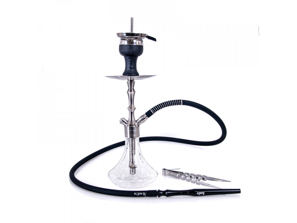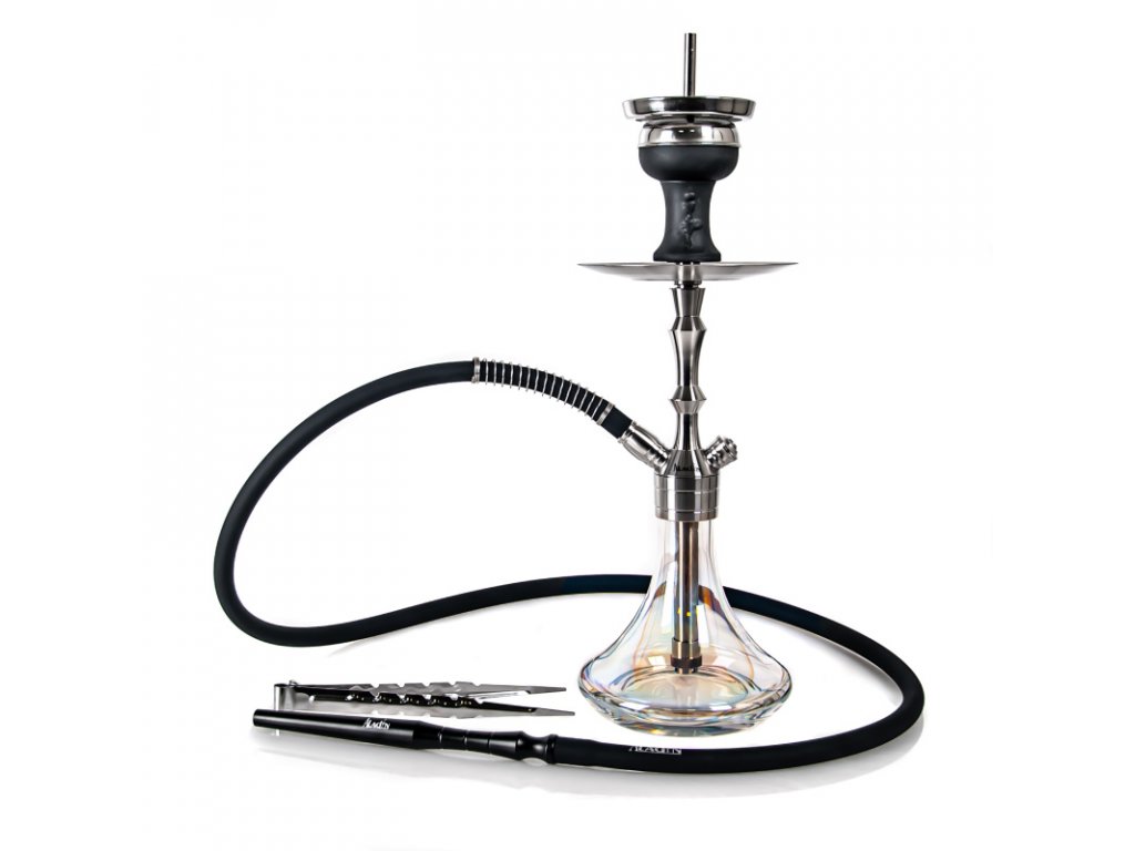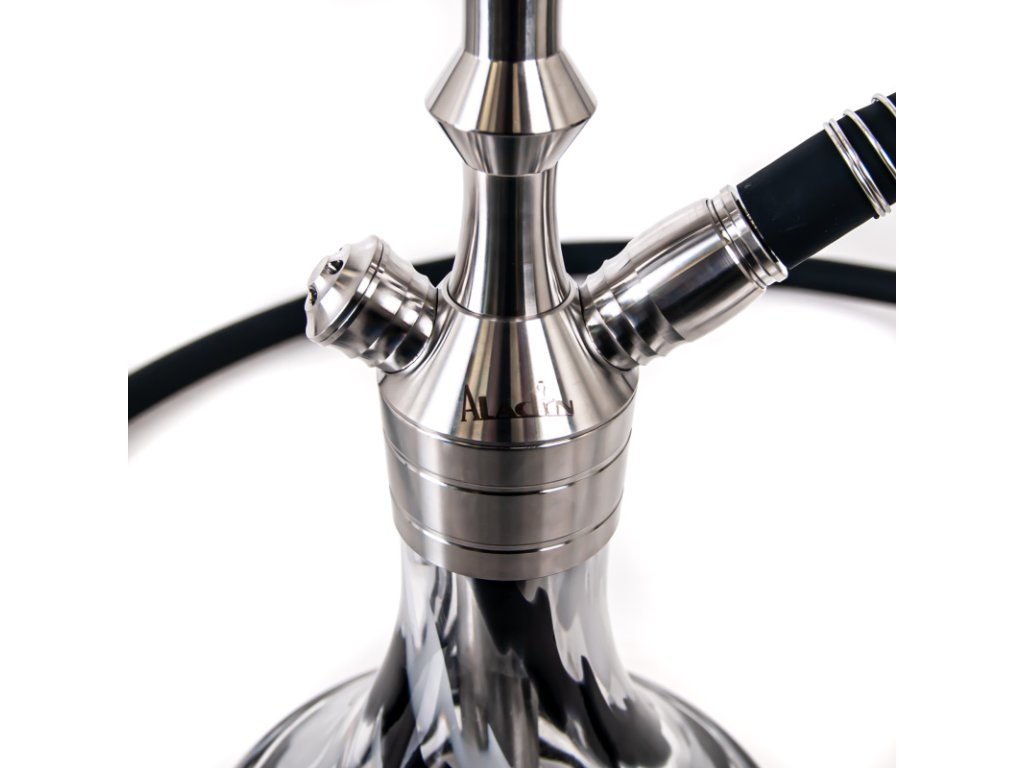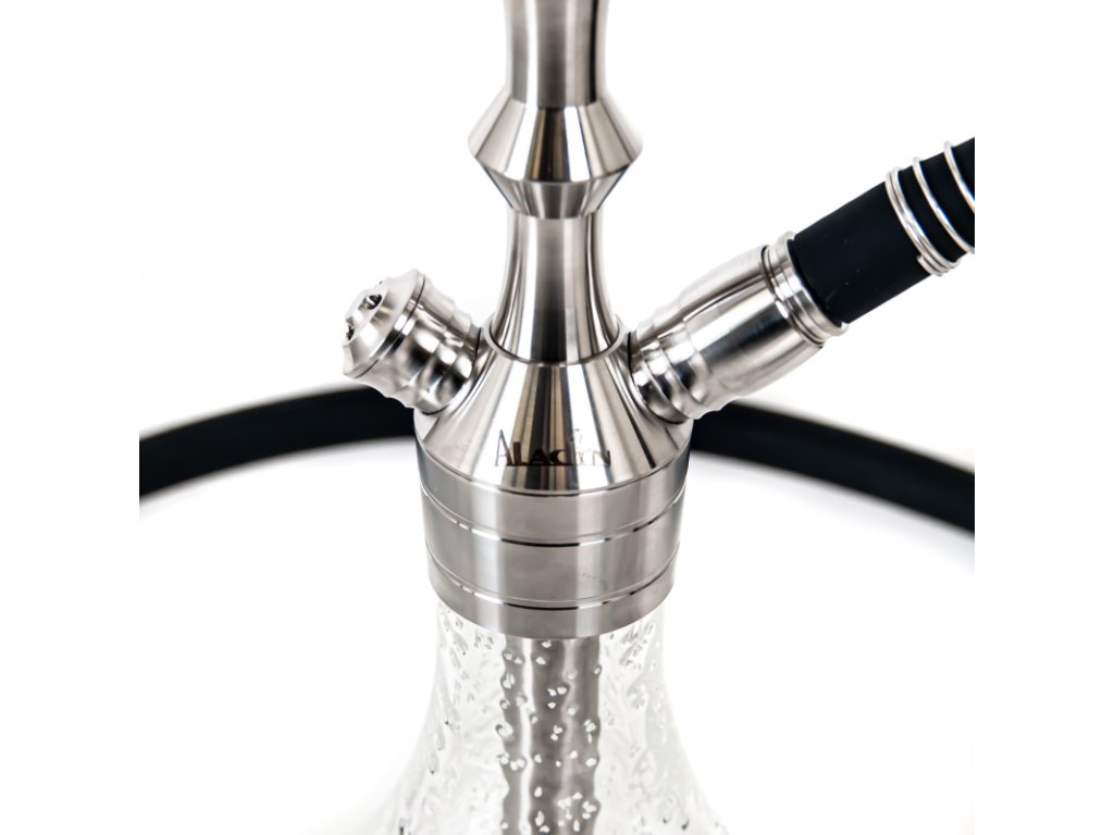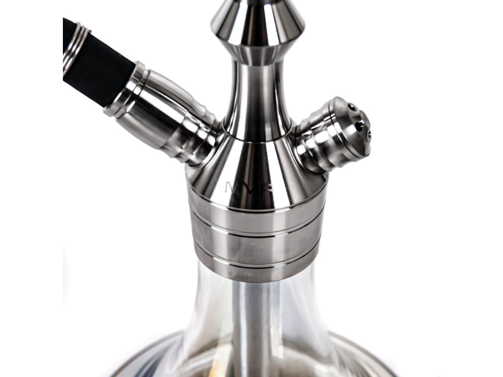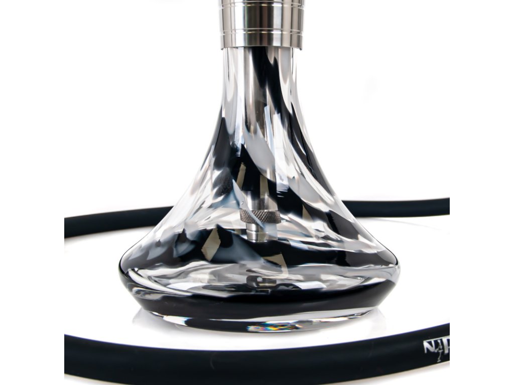 Vodní dýmka MVP360 je vyfrézovaná z pořádného kusu nerezové oceli, což napomáhá lepší stabilitě. Dýmka se jen tak nepřevrhne ani při neopatrné manipulaci. Downstem (spodní trubka) je opatřen nastavitelným difusorem, který zjemní tah a ztiší bublání. Dýmku doplňuje silikonová hadice soft touch s hebkým sametovým povrchem, která vyniká velice příjemným pocitem na omak. S černou hadicí ladí černý hliníkový náustek. A na vrcholu vodní dýmky je keramická korunka Optimus (bez přídavných kroužků) s badchou.