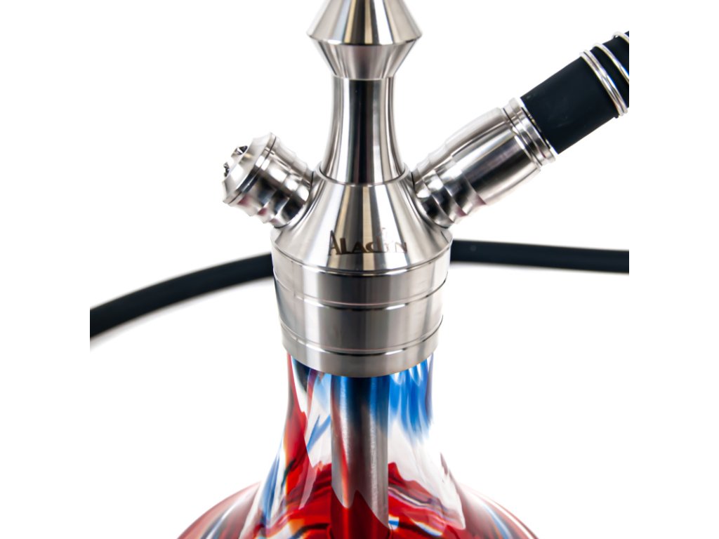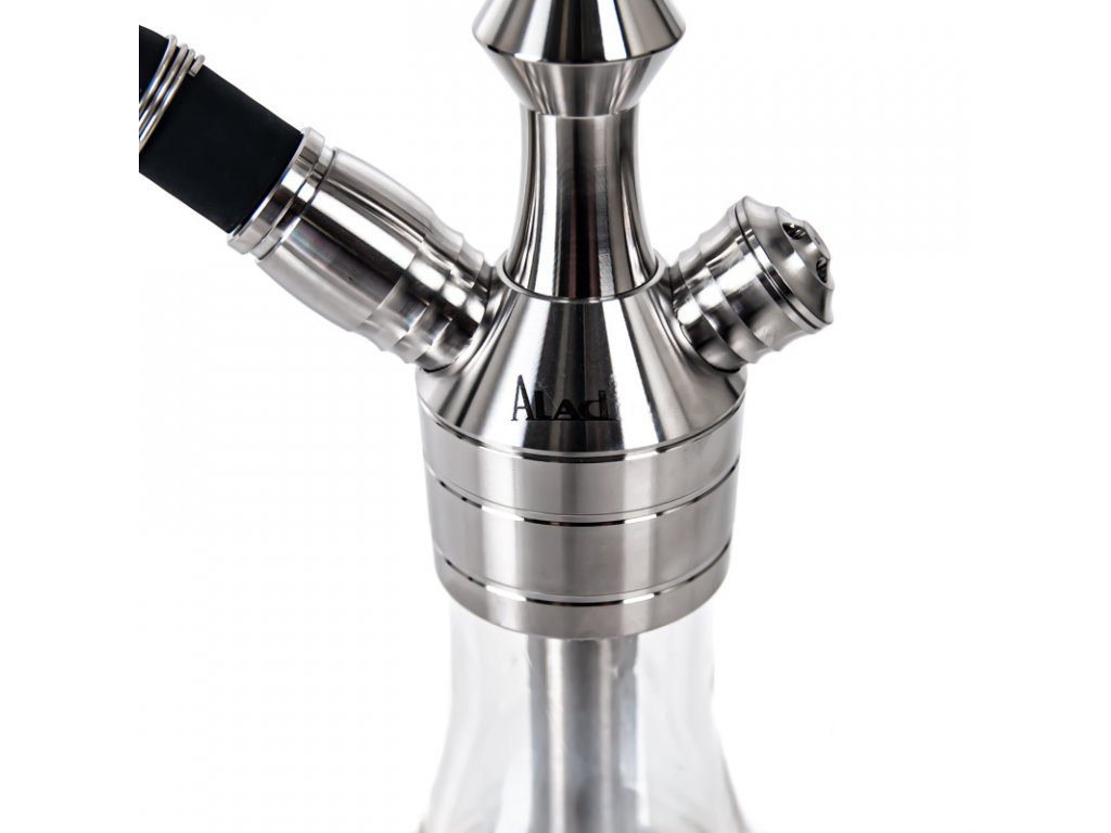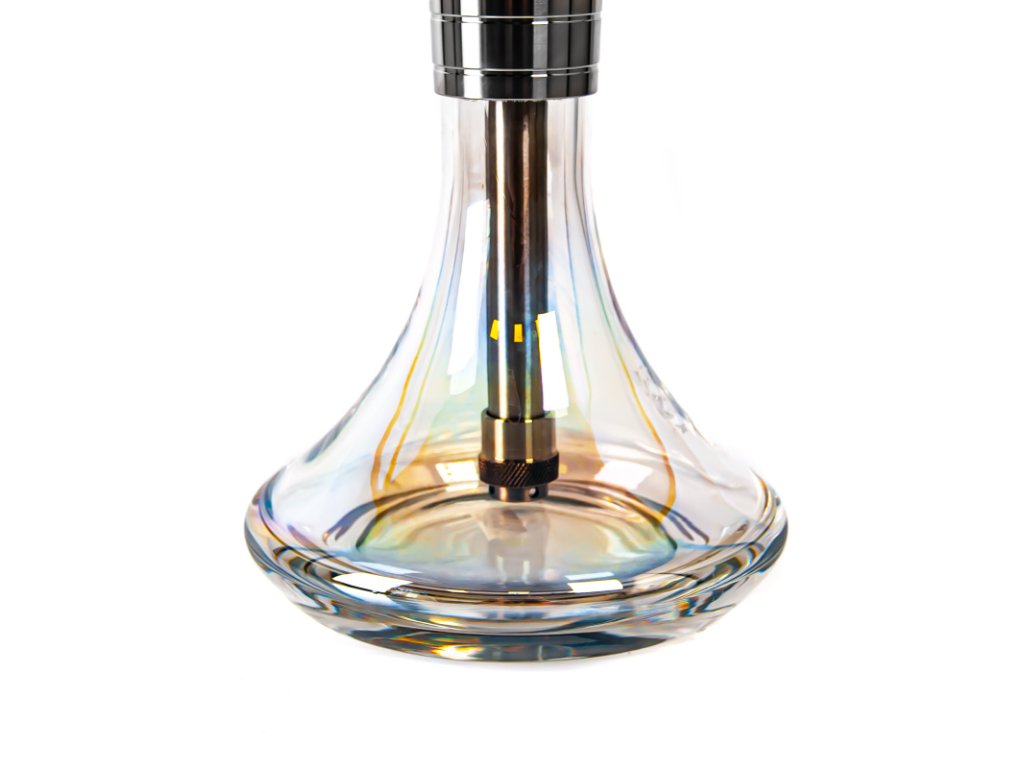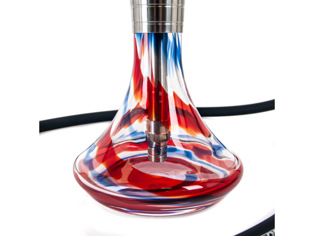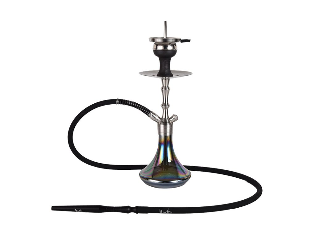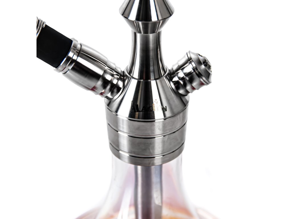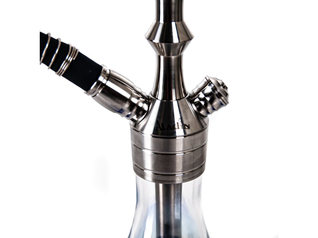 Vodní dýmka MVP360 je vyfrézovaná z pořádného kusu nerezové oceli, což napomáhá lepší stabilitě. Dýmka se jen tak nepřevrhne ani při neopatrné manipulaci. Downstem (spodní trubka) je opatřen nastavitelným difusorem, který zjemní tah a ztiší bublání. Dýmku doplňuje silikonová hadice soft touch s hebkým sametovým povrchem, která vyniká velice příjemným pocitem na omak. S černou hadicí ladí černý hliníkový náustek. A na vrcholu vodní dýmky je keramická korunka Optimus (bez přídavných kroužků) s badchou.