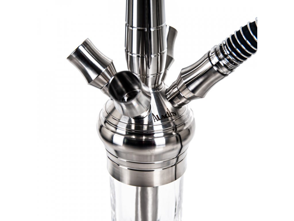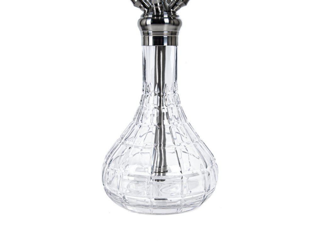 Čtyřšlauchová vodní dýmka MVP 670 Cube je vyfrézovaná z pořádného kusu nerezové oceli, což napomáhá lepší stabilitě. Dýmka se jen tak nepřevrhne ani při neopatrné manipulaci. Zdobená váza dýmce propůjčje jemný nádech elegance a luxusu. Downstem (spodní trubka) je opatřen nastavitelným difusorem, který zjemní tah a ztiší bublání. Dýmku doplňuje silikonová hadice soft touch s hebkým sametovým povrchem, která vyniká velice příjemným pocitem na omak. S černou hadicí ladí černý hliníkový náustek. A na vrcholu vodní dýmky je keramická korunka Optimus (bez přídavných kroužků) s badchou.