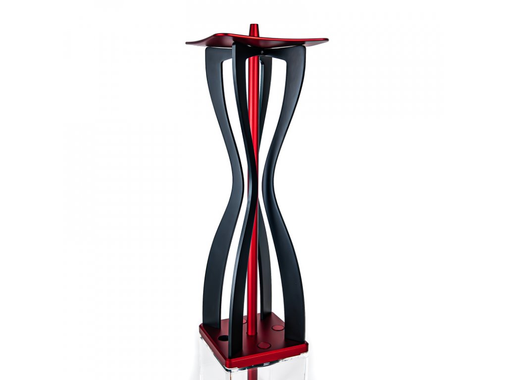 Váza dýmky je vyrobena z odolného tvrzeného plastu s extrémně širokým otvorem pro snadné čištění. U matné silikonové hadice oceníte velmi příjemný pocit na omak. Hadici doplňuje 3dílná hliníková rukojeť s vnitřní pružinou z nerezové oceli.