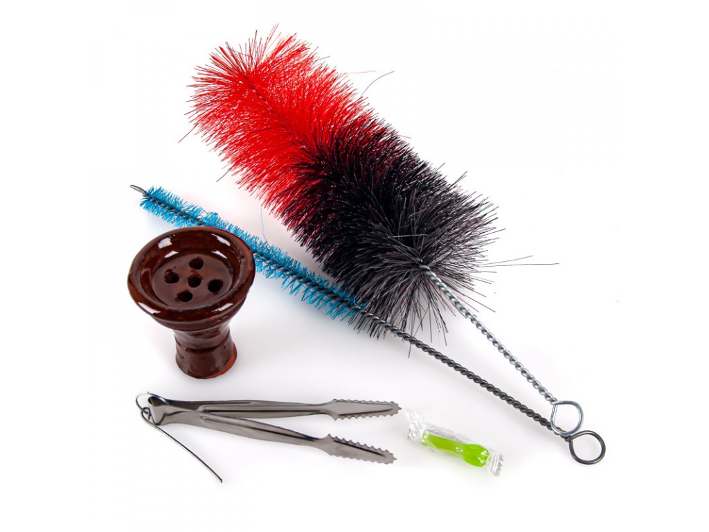 Dýmka je dodávaná včetně kompletního příslušenství: korunka, kleště, veškeré těsnění, náustek, šlauch (počet kusů dle typu dýmky) a čistící štětky.